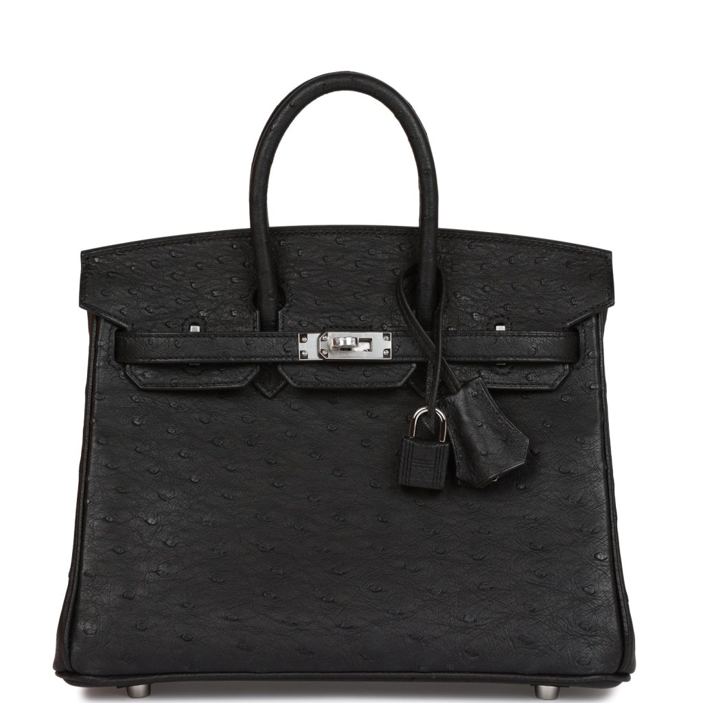 Hermes Birkin 25 Black Ostrich Palladium Hardware