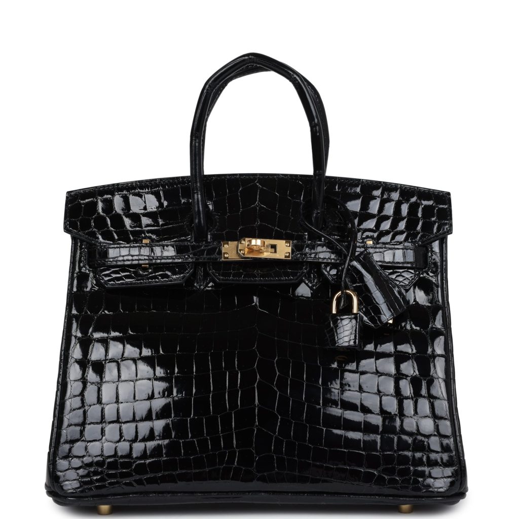 Hermes Birkin 25 Black Shiny Niloticus Crocodile Gold Hardware