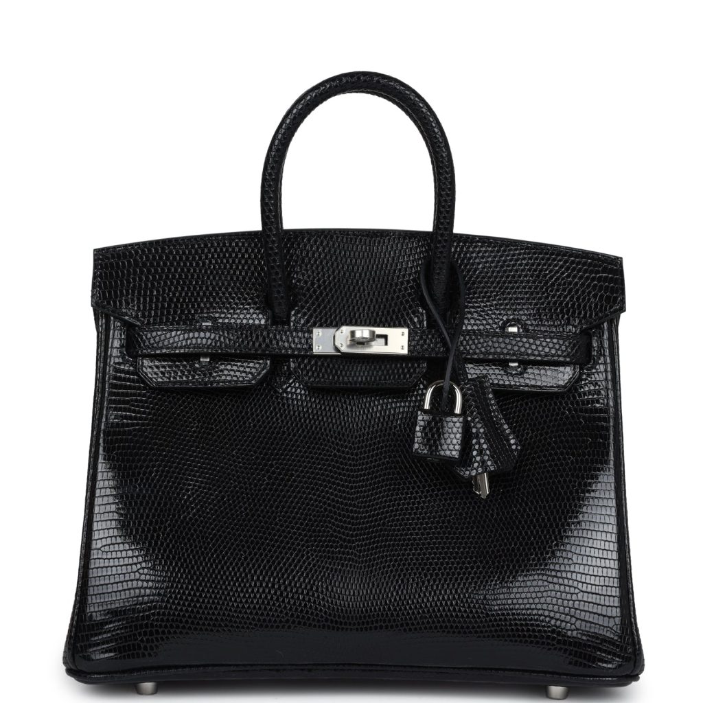 Hermes Birkin 25 Black Shiny Varanus Niloticus Lizard Palladium Hardware