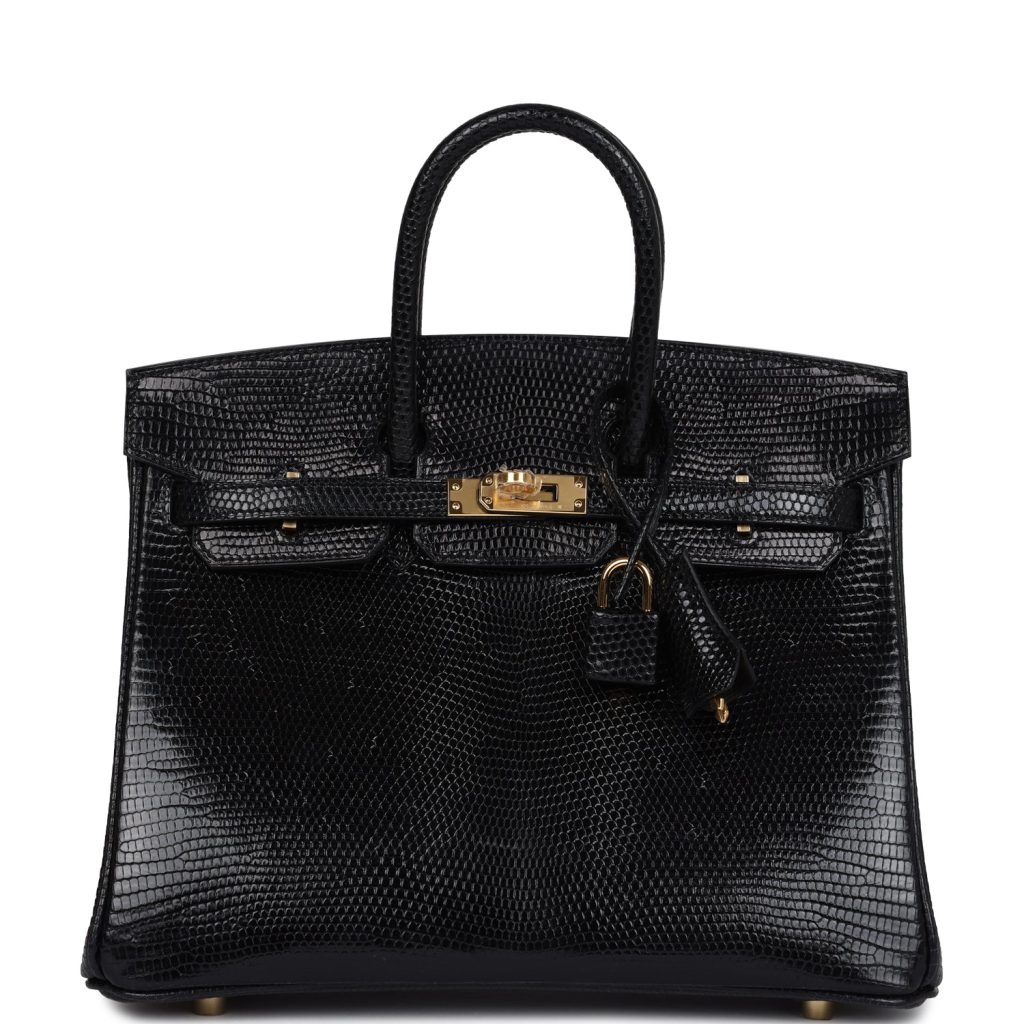 Hermes Birkin 25 Black Shiny Varanus Niloticus Lizard Gold Hardware