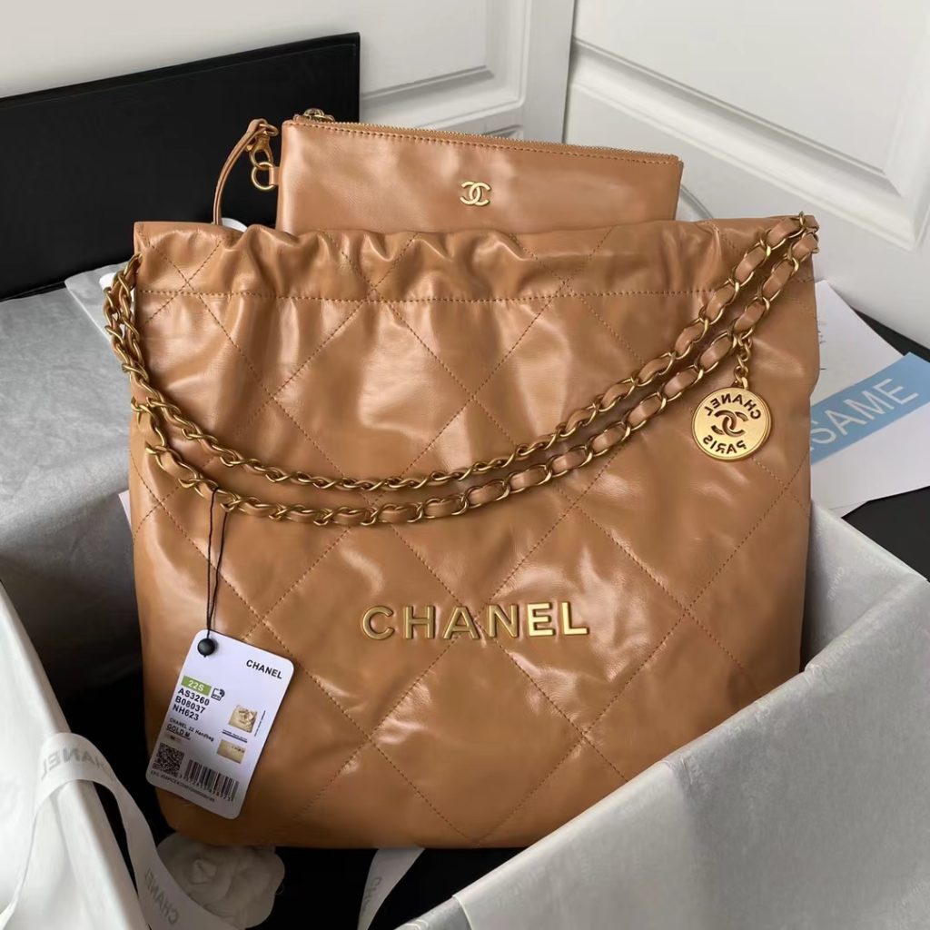 Chanel 22 AS3260 Small Bag Brown Calfskin Gold Hardware