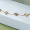 Four-leaf clover bracelets symbolize luck and good fortune. Each leaf represents different meanings such as love, health, wealth, and happiness. Four-leaf clover bracelets are considered a talisman, symbolizing good luck and auspiciousness. They have become a classic style and enjoy widespread attention and popularity. They bring blessings and auspiciousness to the wearer.