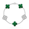 Four-leaf clover bracelets symbolize luck and good fortune. Each leaf represents different meanings such as love, health, wealth, and happiness. Four-leaf clover bracelets are considered a talisman, symbolizing good luck and auspiciousness. They have become a classic style and enjoy widespread attention and popularity. They bring blessings and auspiciousness to the wearer.