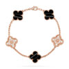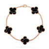 Four-leaf clover bracelets symbolize luck and good fortune. Each leaf represents different meanings such as love, health, wealth, and happiness. Four-leaf clover bracelets are considered a talisman, symbolizing good luck and auspiciousness. They have become a classic style and enjoy widespread attention and popularity. They bring blessings and auspiciousness to the wearer.