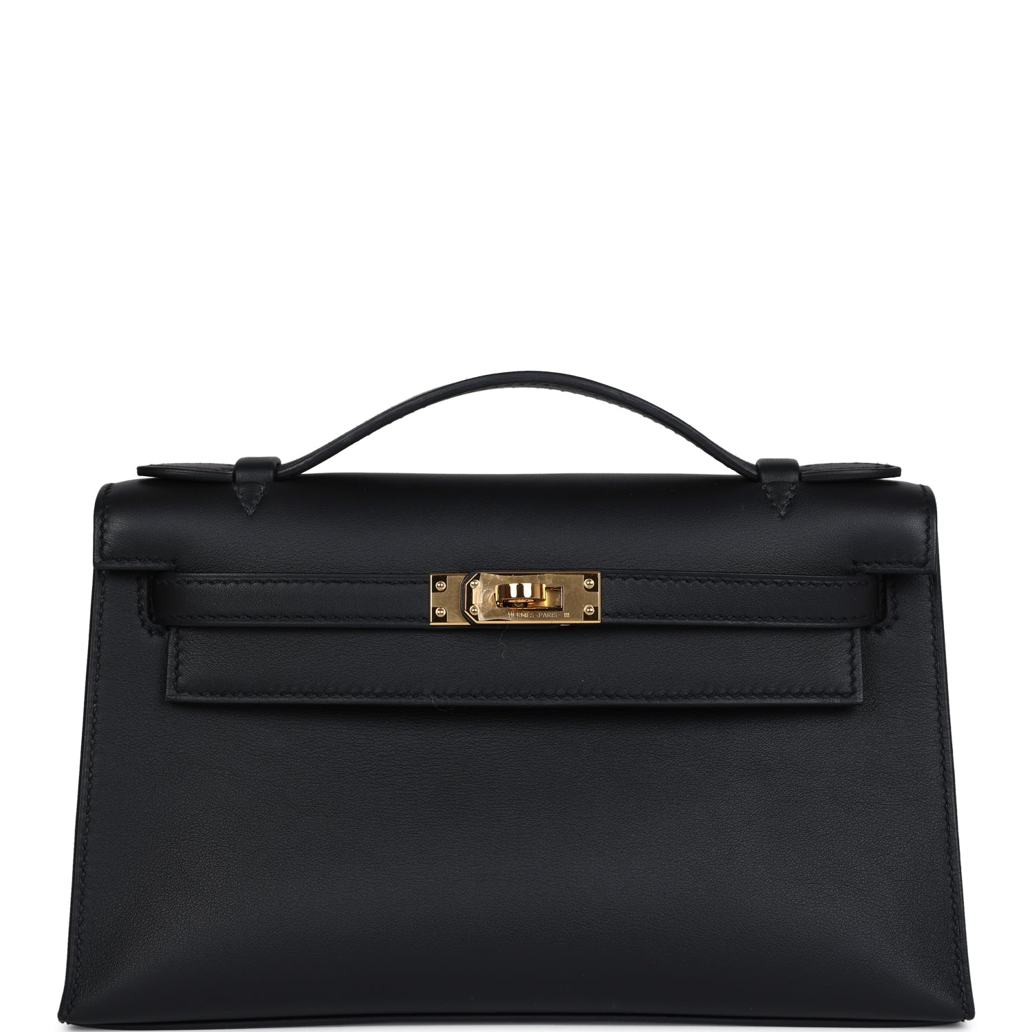 Hermes Kelly Pochette Black Swift Gold Hardware