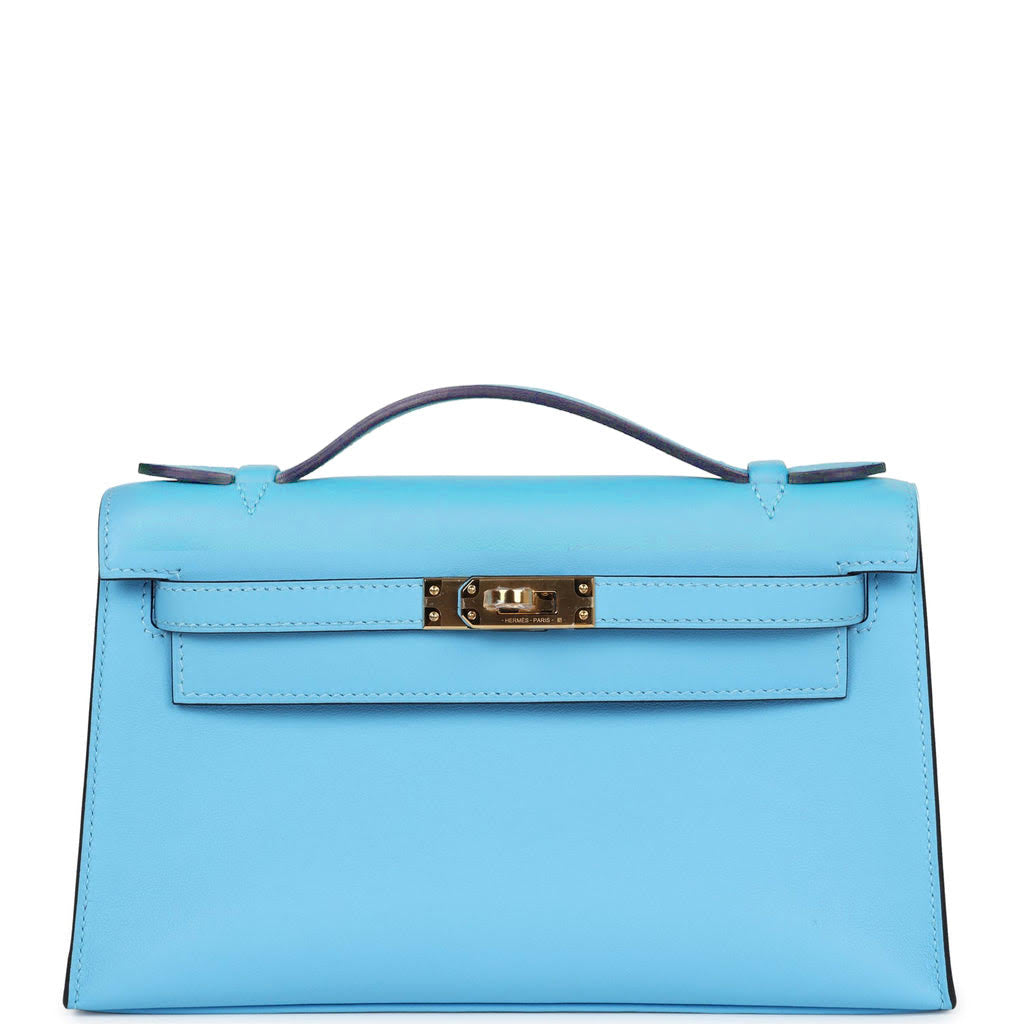 Hermes Kelly Pochette Celeste Swift Gold Hardware