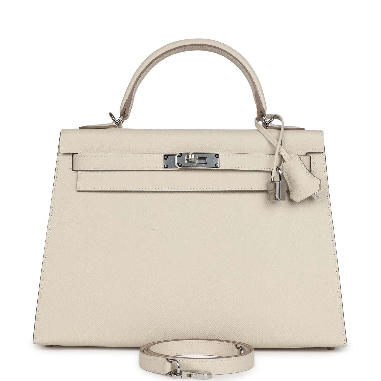 Hermes Kelly Sellier 32 Craie Epsom Palladium Hardware
