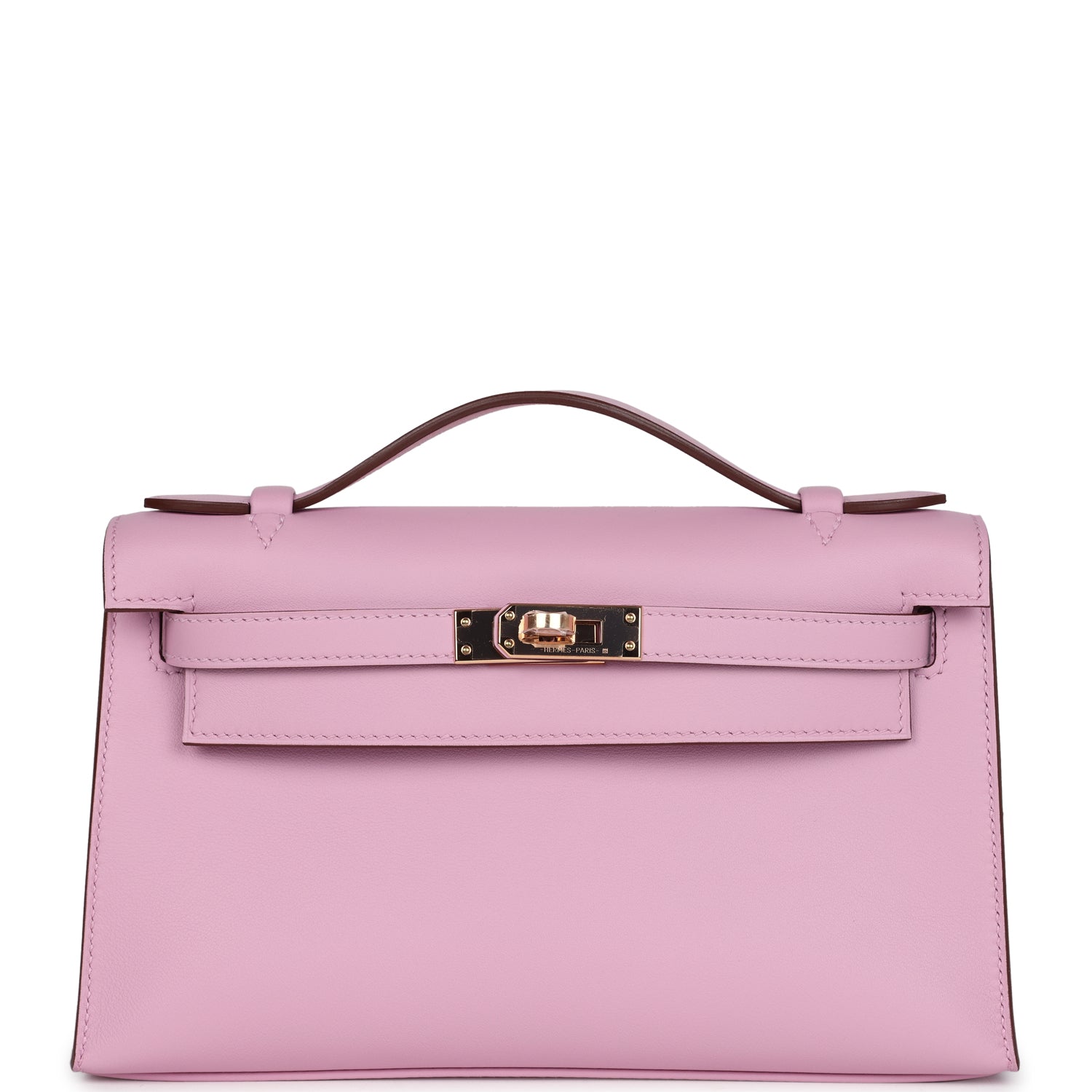 Hermes Kelly Pochette Mauve Sylvestre Swift Rose Gold Hardware