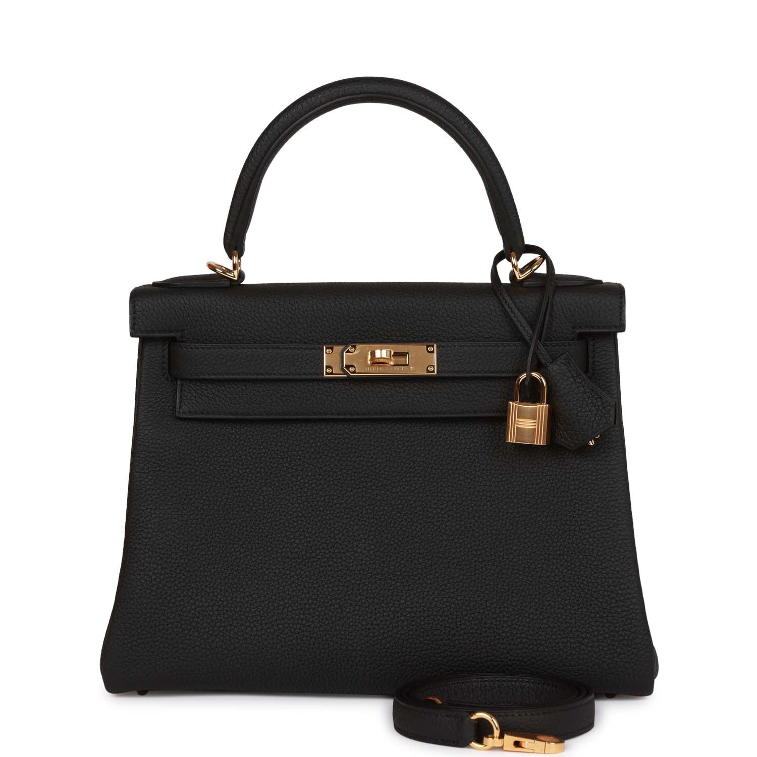 Hermes Kelly Retourne 28 Black Togo Gold Hardware