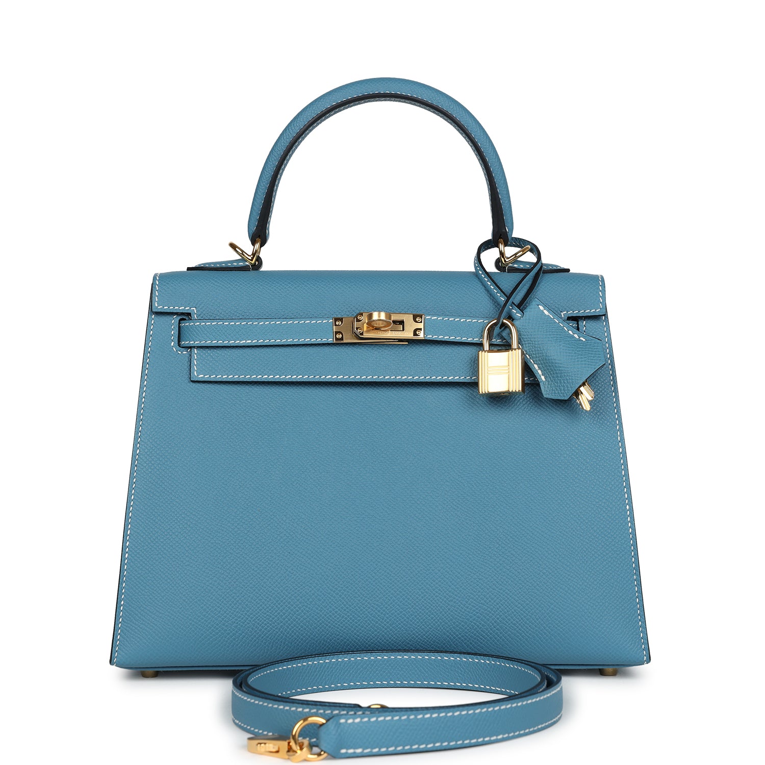 Hermes Kelly Sellier 25 Bleu Brume Epsom Gold Hardware