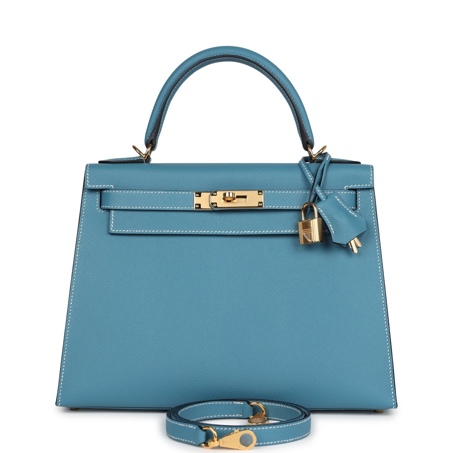 Hermes Kelly Sellier 28 Blue Jean Epsom Gold Hardware