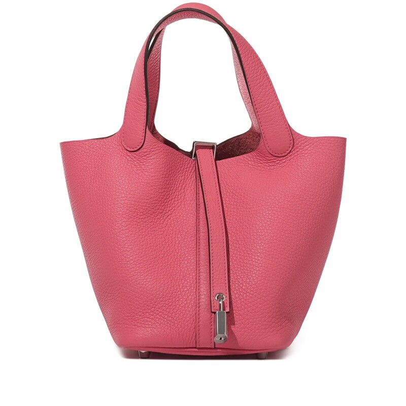 Hermes Rose Sakura Clemence Picotin Lock 18 Palladium Hardware