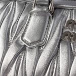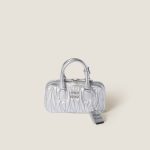 Fine matelassé workmanship reinterprets the classic silhouette of the top-handle bag, giving it a three-dimensional, textured, and extremely sophisticated effect. The lettering logo on the front, which echoes the finish of the metal hardware, stands out against the refined artisan workmanship with an iconic and immediately recognizable touch. The dynamic and elegant lines of this mini format and the detachable, adjustable shoulder strap contribute to the versatile, functional, and modern design of the bag.