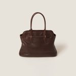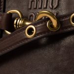 The Aventure top-handle bag, recovered from the Miu Miu archives, has been reinterpreted in terms of a lighter structure and attitude, creating a classic style with timeless charm. The embossed lettering logo completes the design with an iconic note.