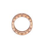 Drawing its inspiration from the world??s most renowned amphitheater, the Colosseum, the B.zero1 three-band ring in 18 kt rose gold is a ground-breaking statement of Bvlgari’s creative vision. Born as a celebration of the future, this piece is embellished with sparkling pave diamonds along its edges, while its distinctive spiral represents the power of new beginnings.