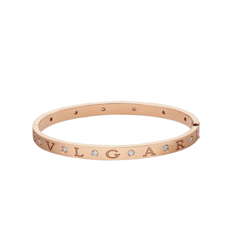 The B.zero1 Essential bracelet in 18K rose gold and diamonds is a modern interpretation of elegance rooted in Bvlgari’s Roman tradition. This bracelet is true to the collection’s aesthetic, reinterpreting the prestigious brand logo as a unique and classic design element. This versatile piece can be easily layered to create a variety of modern and timeless looks, cleverly showing your personality.