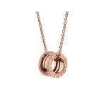 Inspired by the world-famous amphitheater, the Colosseum, the B.zero1 necklace is a true expression of Bvlgari’s creative vision, challenging the very essence of jewelry design. Its unique, pure spiral shape symbolizes the harmony of past, present and future – reflected in the splendor of the Eternal City – and the pioneering spirit of the collection. B.zero1 pendant with necklace, 18K rose gold, with pavé diamonds around the edges. Length 14.96-17.70 inches (38-45 cm).