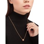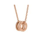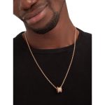 B.zero1 series pendant necklace, made of 18K rose gold, decorated with pavé diamonds.