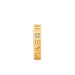 The B.zero1 Essential ring in 18K yellow gold and set with a single diamond is a modern interpretation of elegance rooted in Bvlgari’s Roman heritage. This ring is a reflection of the collection??s aesthetic, reinterpreting the prestigious brand logo as a unique and classic design element. This versatile piece can be easily layered to create a variety of modern and timeless looks, and cleverly express your personality.