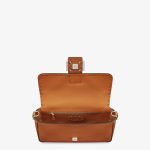 Iconic medium Baguette bag, made of brown Cuoio Romano leather embellished with oversized tone-on-tone hand stitching. Decorated with an FF clasp.