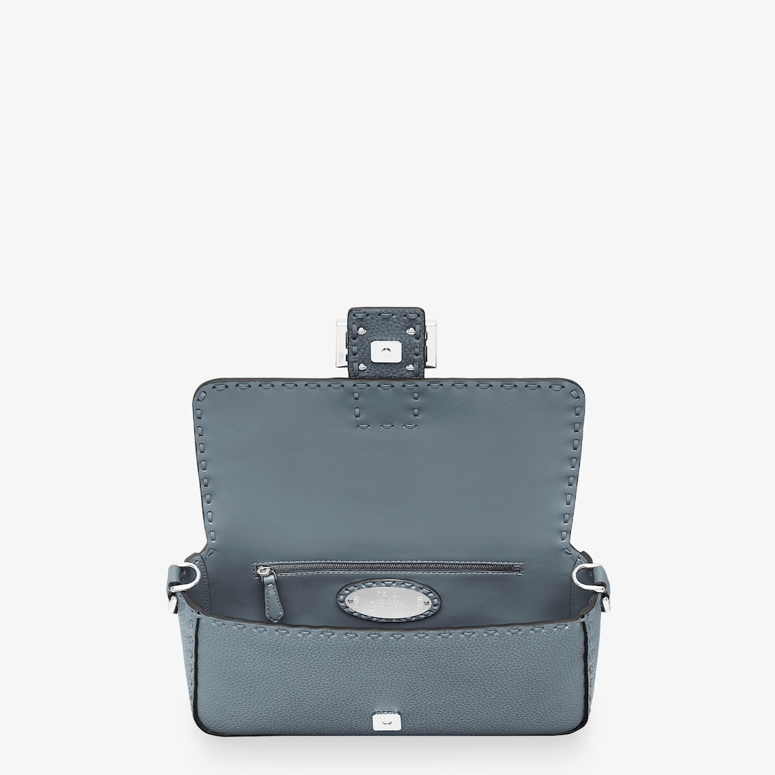 Made of blue Cuoio Romano leather, calfskin with a characteristic natural grain, produced with a metal-free tanning process.