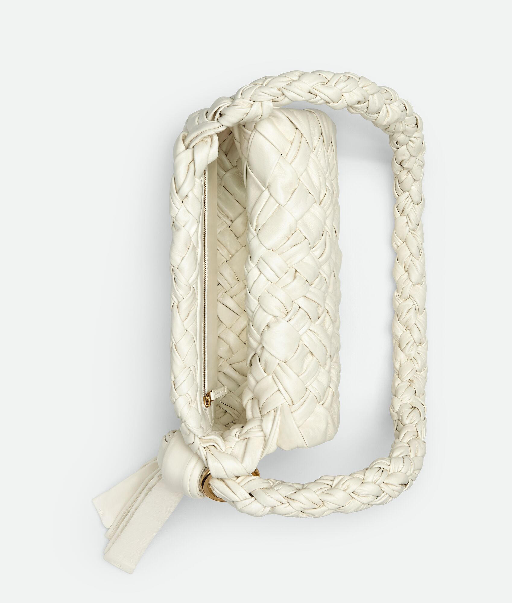 Sliding shoulder strap with metallic ring and knotted end
