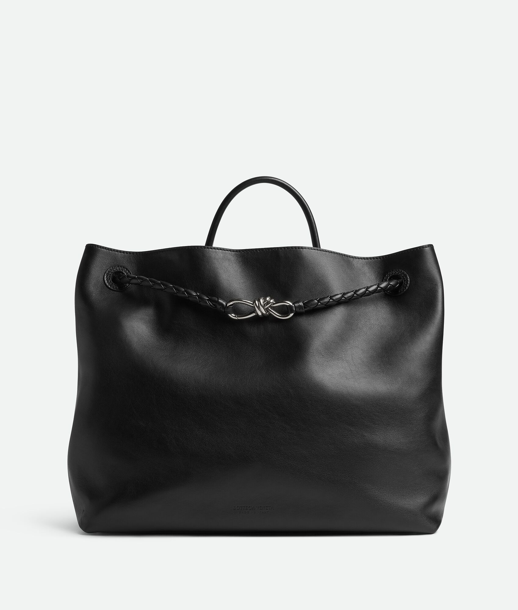 Large silky calfskin top handle bag with sliding cross-body strap