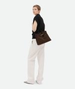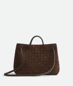 Medium Intrecciato suede top handle bag with sliding cross-body strap