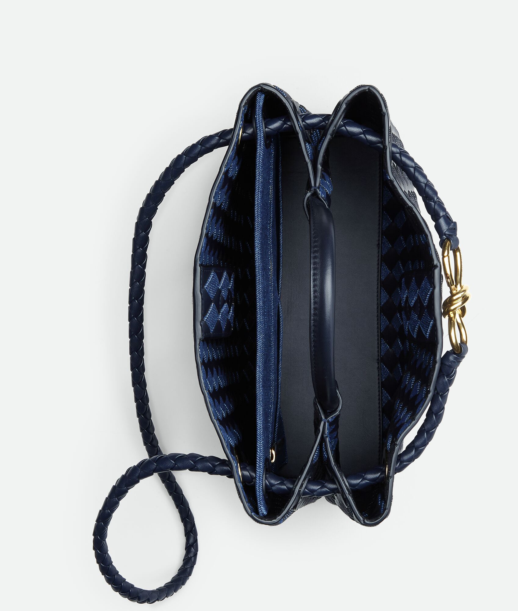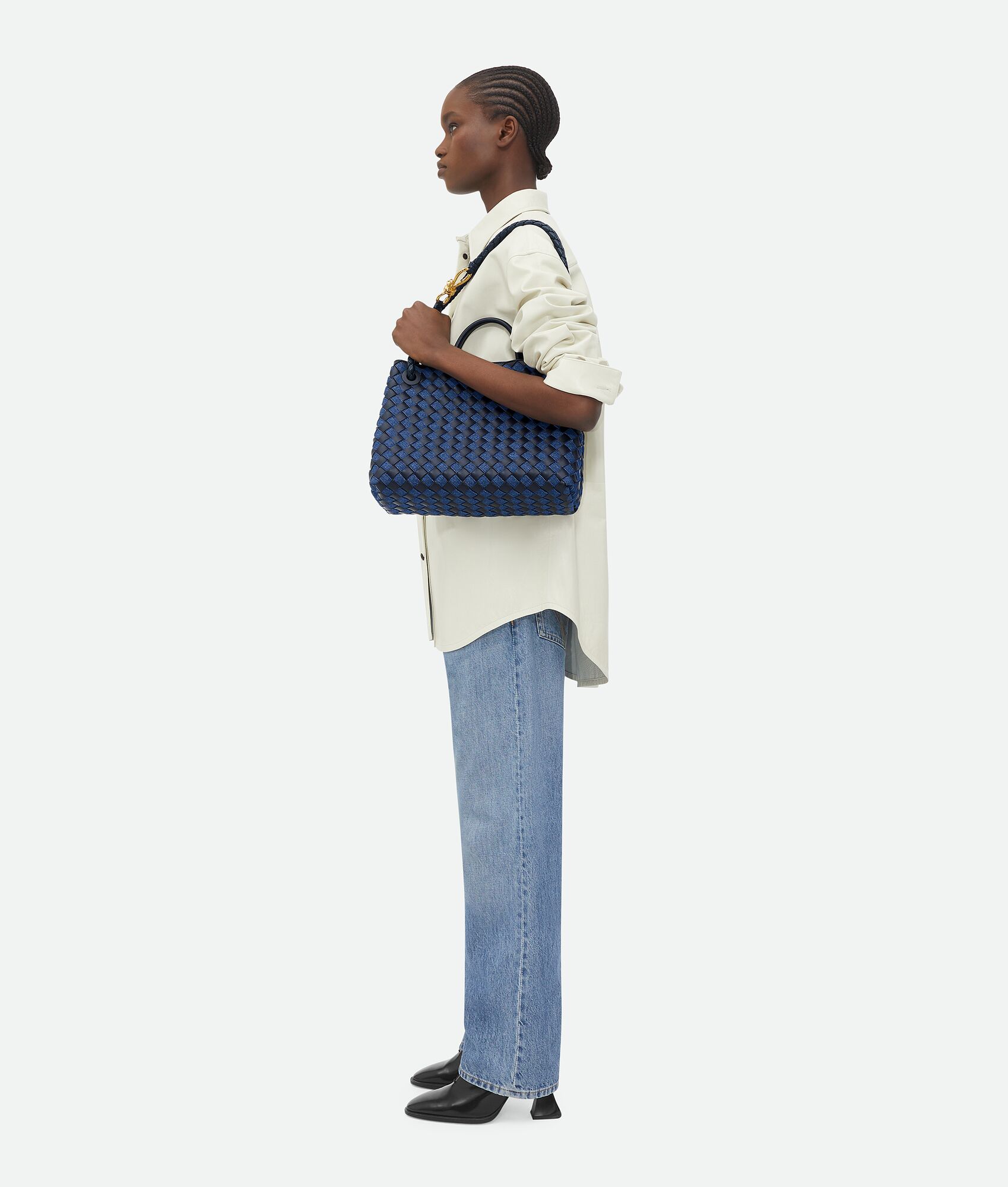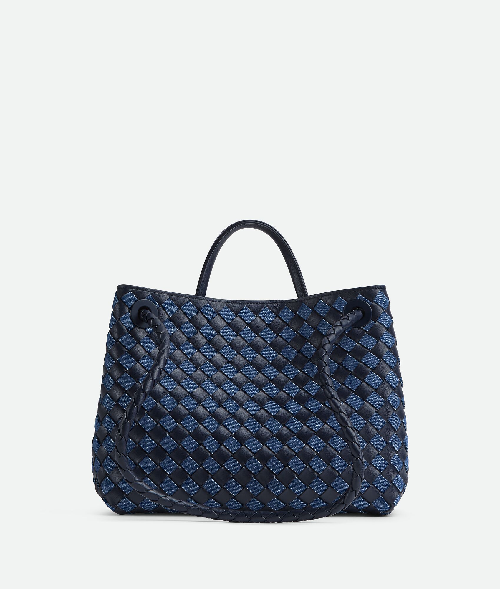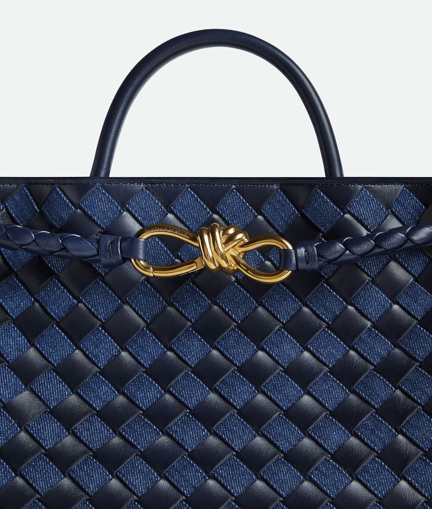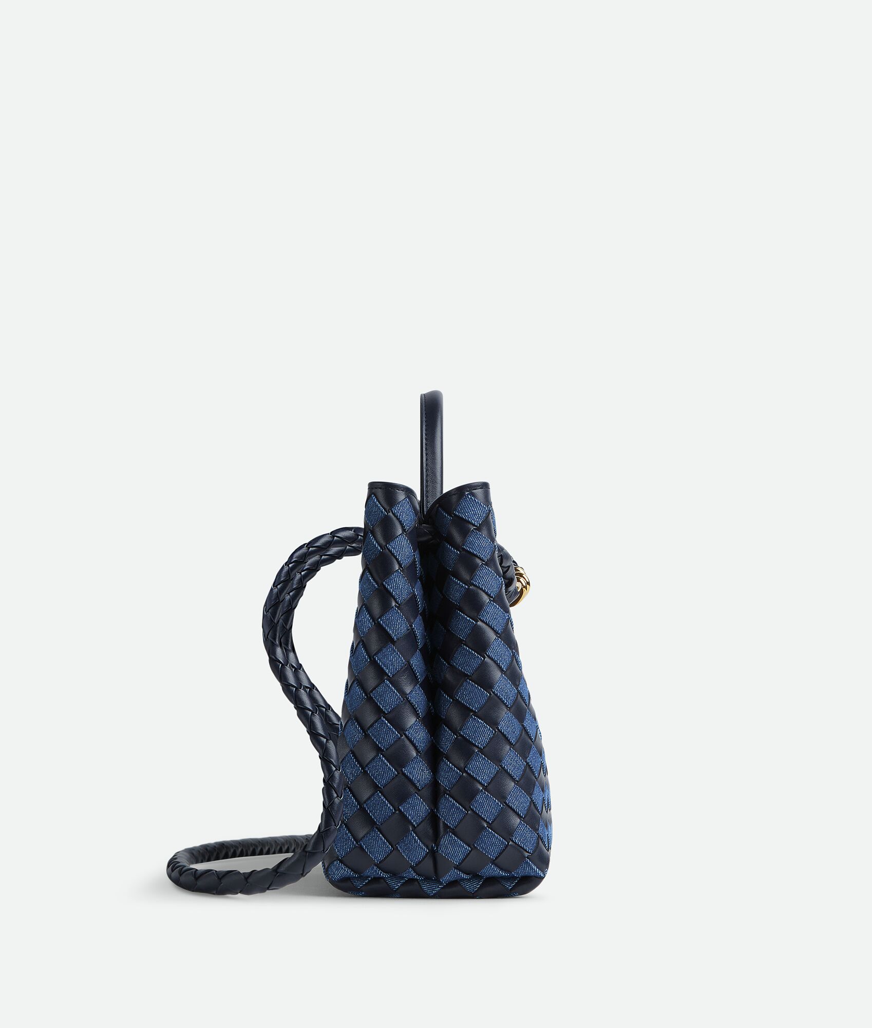 Medium Intrecciato leather and denim top handle bag with sliding cross-body strap