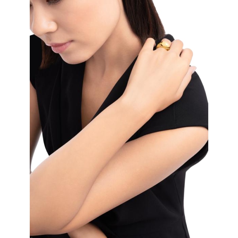 The Bulgari Cabochon ring is made of 18K gold. The teardrop-shaped design shows the harmonious combination of volume and shape. Through the tactile experience, gold is shaped into a masterpiece of art with agility and vitality, and the ingenious goldmaking craftsmanship is fully displayed. This jewelry piece draws inspiration from the smooth convex egg-shaped cut surface, and the pure simplicity of gold is set off by precious metals. The convex egg-shaped cut has been the aesthetic symbol of Bulgari since the 1950s, which fully demonstrates the charm of the gemstone material.