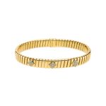 Bvlgari Tubogas 18K yellow gold bracelet, decorated with pave diamonds