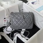 Chanel 23C AS1786 Mini Square Pearl Embossed Flap Bag Antique Silver Hardware Grey