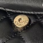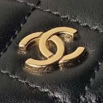 This Mini Phone Holder Backpack with Chain is crafted from black lambskin with light gold hardware and features a backpack-style bag, small front snap coin pocket with CC logo, leather top handles, full zip closure with leather zipper and CC logo charm, and a convertible light gold chain interwoven with a black leather crossbody/shoulder strap.