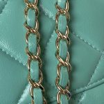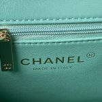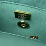 This Chanel Vintage flap bag is crafted in turquoise lambskin with gold-tone hardware and features the signature CC turnlock closure and front flap, half-moon back pockets and turquoise top handles.