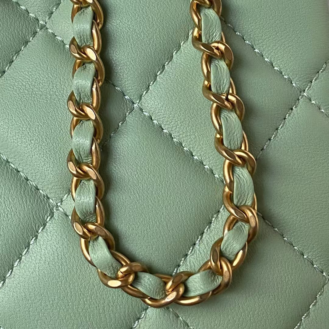 Chanel 24C AS4596 Vintage Logo Quilted Lambskin Shoulder Bag Light Green