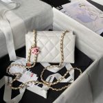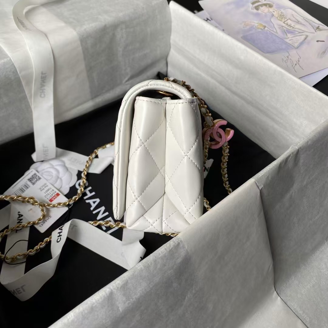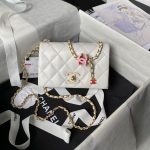 2023/24 Métiers d’art flap bag:small flap bag, shiny lambskin, enamel and gold metal, white.