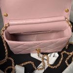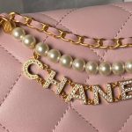 2023/24 Métiers d’art flap bag:mini flap bag, shiny lambskin, imitation pearls and gold-tone metal, light purple, Chanel official website.