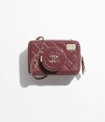 The new camera bag uses diamond quilted sheepskin to create a cute and playful camera shape. The “lens cover” is embellished with the classic double C logo. When opened, it is an exquisite and practical makeup mirror. There are 4 colors to choose from:black, white, dark beige and burgundy, and it comes with a signature leather chain shoulder strap.