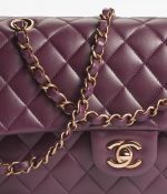 This flap bag is made of burgundy lambskin with gold hardware, front flap with signature CC turnlock closure, half-moon back pocket, adjustable gold interwoven chain link and burgundy leather shoulder strap.