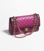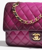 This flap bag is made of ombre lambskin with light gold hardware, front flap with CC turnlock closure, half-moon back pocket, interwoven light gold chain and ombre leather crossbody strap.