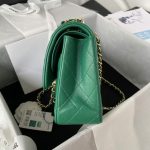 This medium classic double flap bag is crafted in green leather with light gold hardware, featuring the signature CC turnlock closure on the front flap, half-moon back pocket, adjustable interwoven light gold chain and green leather shoulder strap.