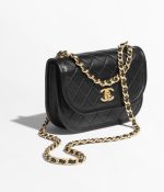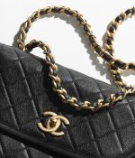 This flap bag is crafted from black quilted caviar leather with antique gold hardware and features a CC logo front flap, antique gold chain links and a black leather padded shoulder/crossbody strap.
