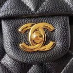 This small Classic Double Flap Bag in black caviar leather with gold hardware features a front flap with signature CC turnlock closure, half-moon back pocket, adjustable gold interwoven chain links and a black leather shoulder strap.