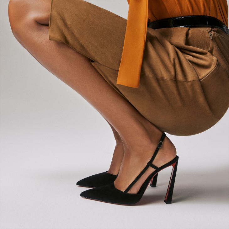 The Condoraline pump has a pointed toe reminiscent of a bird’s beak. This sophisticated model is crafted from black veau velours leather. Showcasing Maison Christian Louboutin’s ‘savoir-faire’, it is distinguished by its 100 mm bevelled heel. An elegant, sleek strap wraps around the foot.