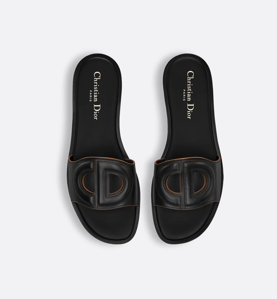 The D-Club slide has timeless and simple elegance. The black calfskin upper with contrasting dyed edges is embellished with an openwork CD signature, creating a subtle 3D effect. The padded leather insole offers ultimate comfort while the minimalist design allows it to be easily slipped on to complete laid-back attire.