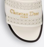 The D-Lane slide is an emblematic style with a timeless look. The white openwork Microcannage calfskin upper is adorned with a gold-finish metal Christian Dior Paris signature, adding an instantly recognizable touch. The padded leather insole offers ultimate comfort while the streamlined design makes it easy to slip on for a laid-back look.