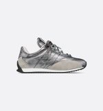 New for Summer 2025, the D-Sketch sneaker reflects a hallmark retro aesthetic. Combining silver-tone crinkled lambskin and laminated calfskin, it features printed markings inspired by the production stages of shoemaking, panels in beige suede calfskin and double lacing. The handwritten Christian Dior Paris signature appears on the sides, while a Christian Dior Paris panel and tag adorn the heel counter and tongue. Complete with a thin sole in two-tone rubber, the sneaker will lend a couture touch to any casual look.