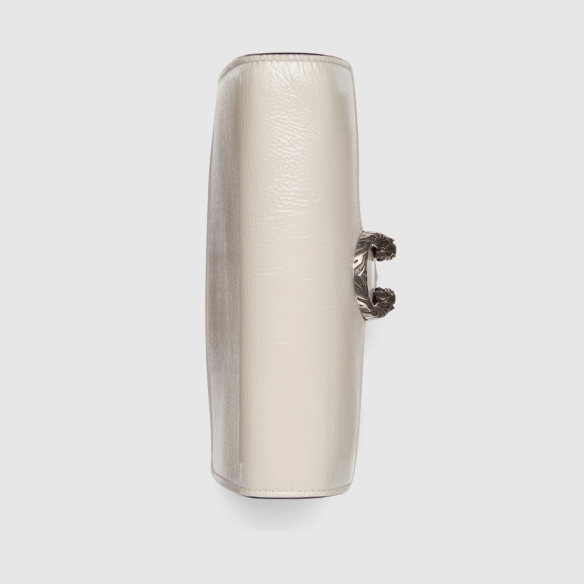 A shiny patent leather, in the signature Rosso Ancora shade of red, brings a fresh take to the Dionysus’ well-structured design, while creating contrast with the signature tiger head hardware in a light gold tone. A suede leather lining completes the style with an elegant finish.