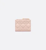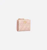 The Dior Caro Dahlia wallet displays the iconic Cannage topstitching in a contemporary variation. Crafted in powder pink supple calfskin, it has a CD signature on the front. The chic and spacious companion can be coordinated with other bags from the same line.