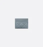 The Dior Caro Freesia card holder presents an elegant and practical style. Crafted in cloud blue supple calfskin with Cannage stitching, it is embellished with the CD signature on the front. Featuring five card slots, the refined accessory will fit anywhere and can be paired with other Dior Caro creations.